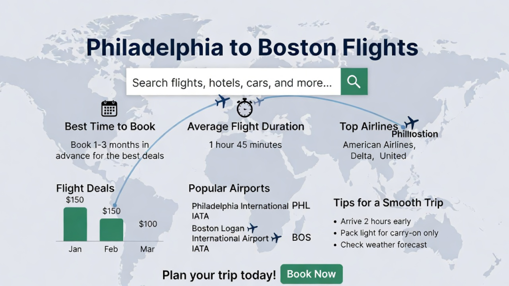 Choosing philadelphia to boston flights is the fastest and most efficient way to travel between these two major East Coast cities. With short flight times, multiple daily departures, and competitive fares, flying offers both convenience and flexibility. By booking early, comparing airlines, and planning ahead, travelers can enjoy a smooth and affordable journey. Whether you are traveling for business, education, or leisure, this route provides reliable options to suit your schedule and budget.
